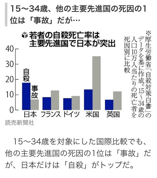 | 若い世代の「死因トップが自殺」はG7で日本だけ : 未成年自殺率、最悪を更新 - Nippon.com 若い世代の「死因トップが自殺」はG7で日本だけ : 未成年自殺率、最悪を更新 Nippon.com (出典:Nippon.com) |