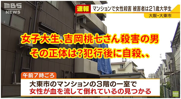 府警は男性が殺害に関与したとみて捜査。女性の部屋の玄関ドア外側には扉が開かないようにするドアストッパーが置かれており、事件との関連を調べている。死亡したのは、3階に住む大学生の吉岡桃七ももなさん(21)と、2階の40歳代の住人とみられる男性。