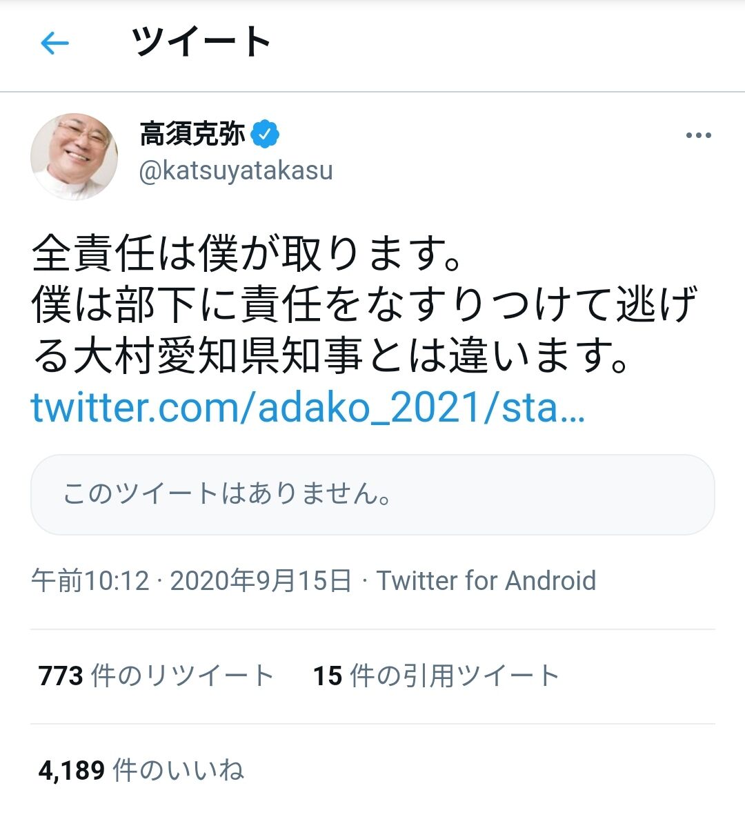 自分の責任をさておいて「私は全く知らなかった」を先に言う高須の下劣さ