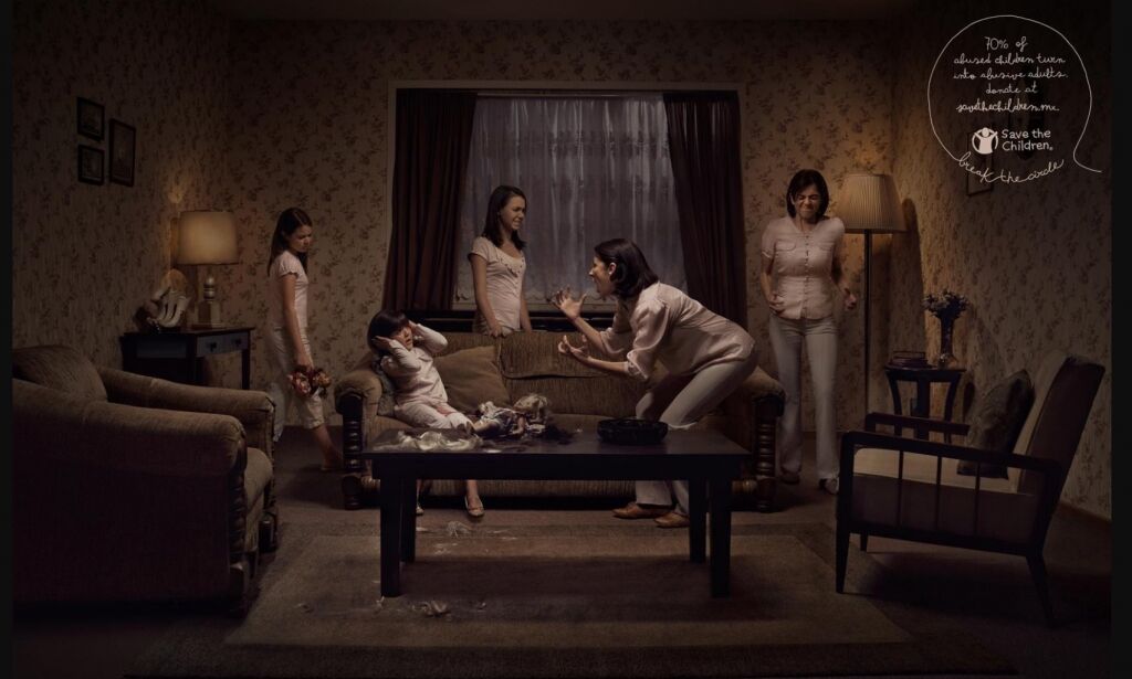 「虐待の連鎖」を表現した広告です。