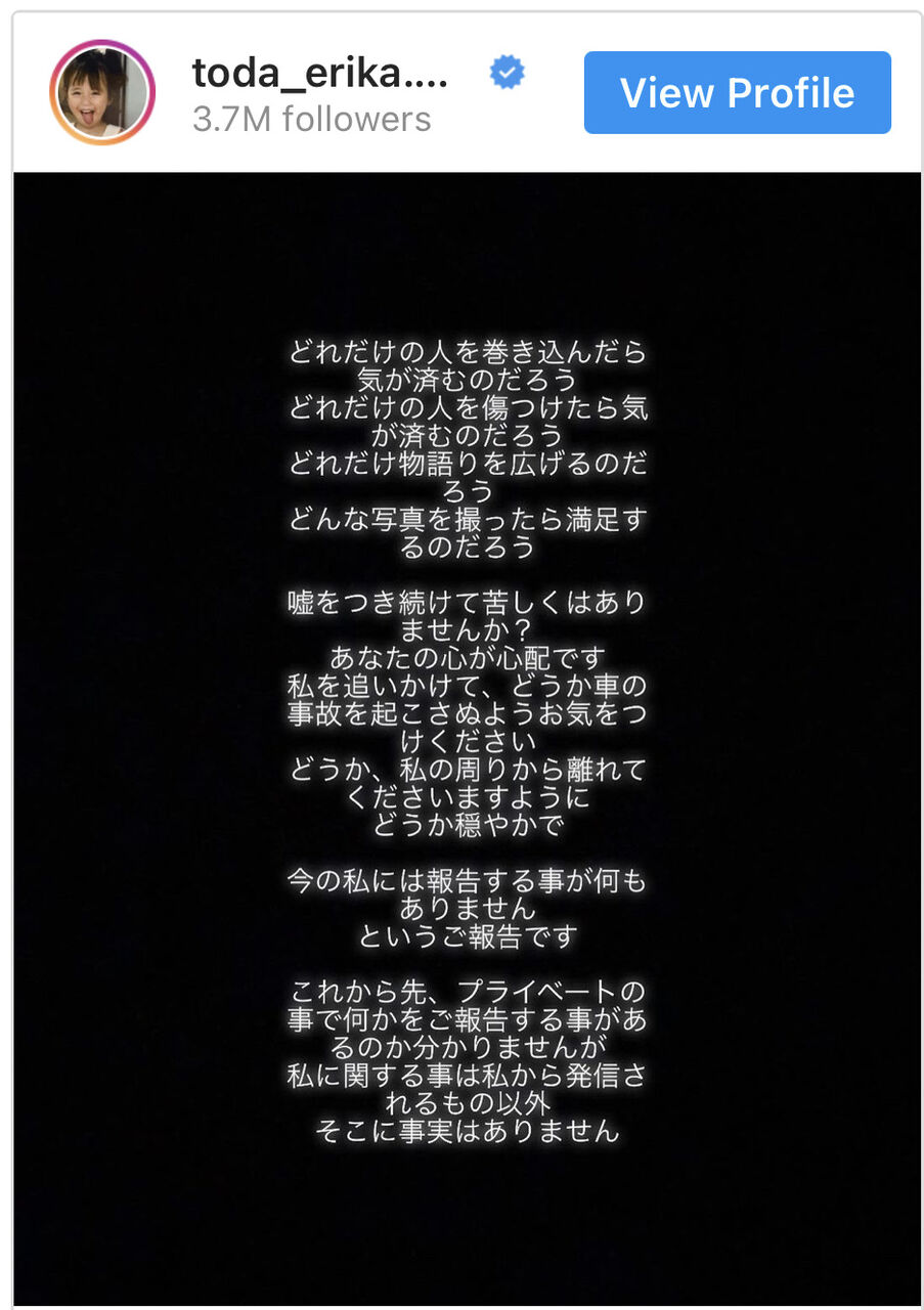 実は、水川は戸田の「どれだけの人を巻き込んだら気が済むのだろう」などとする反論を、自身のインスタのストーリーズ(24時間経過後に投稿が消える機能)にシレッと添付しているのだ。さらに「わたしたちからのメッセージです」とも書き込んでいる。