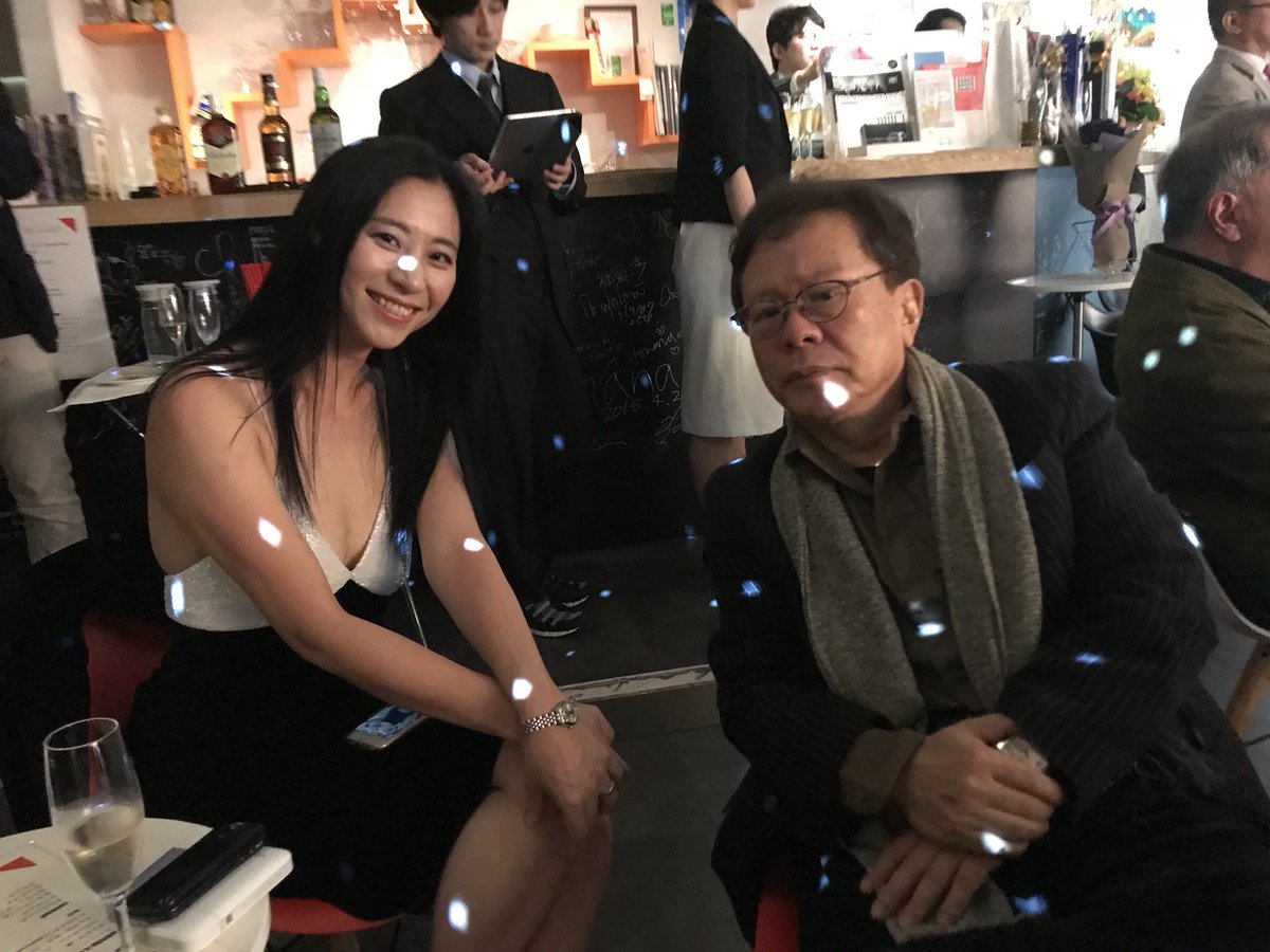 自身の愛娘を間に挟んだ姉妹ショットは、切れ長のまなざしや涼しげなほほえみなど、すべてがうり二つだ。