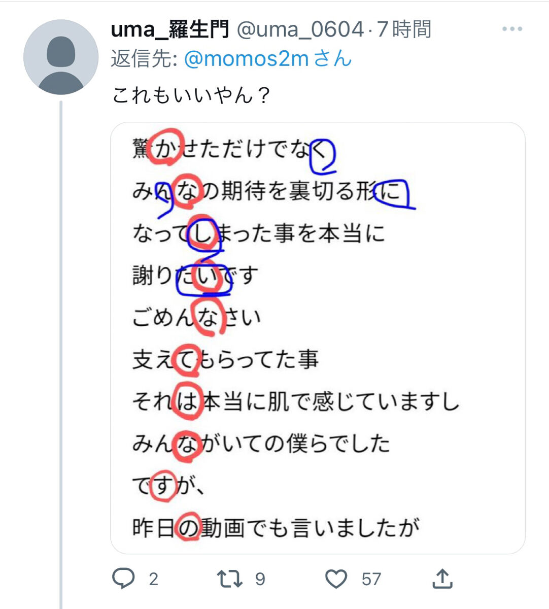 縦読みより普通に読むほうが本音出てるって