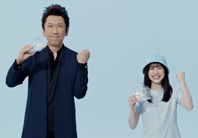 芦田さんと布袋さんが共演したのは『サントリー天然水』のCM。撮影では、2人が今までより小さく折りたためるペットボトルを体験しました。