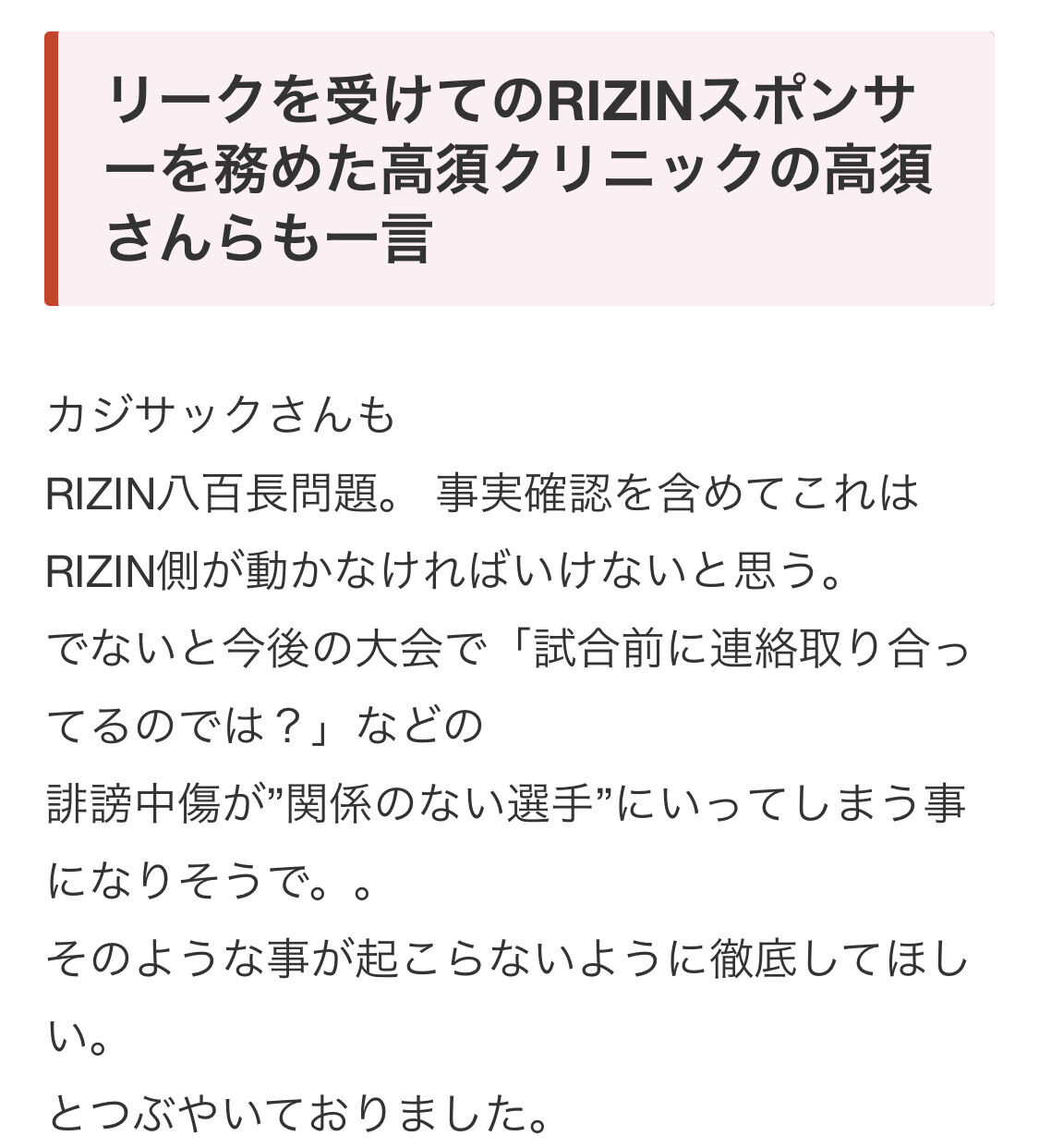 パンチをもらうと体がしびれるので、試合を辞退する方向でRIZINに話をしております。」