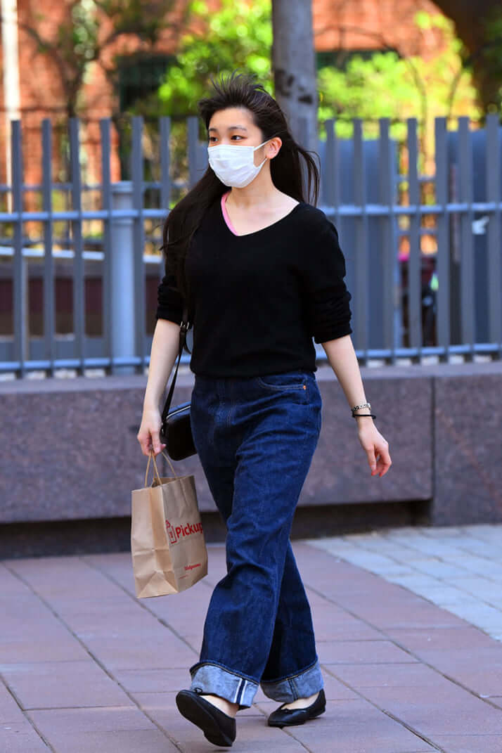 そんなスーパーマーケットへ買い物に向かう眞子さんは、薄いブルーのブラウスに白いワイドパンツ、足元はフラットサンダルと夏らしい涼やかな装い。