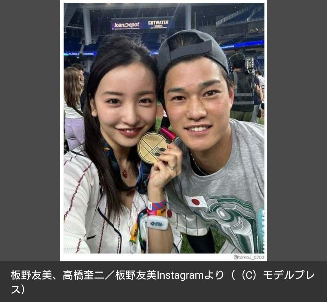 「実は板野、WBC決勝観戦時にホワイトのほうを着用していて、25日にインスタで『WBC14年ぶりの優勝おめでとうございます』『私達家族にとってもかけがえの無い瞬間でした』などとコメントした投稿でも、夫の名前と背番号が入ったユニフォームの下に苺柄ワンピースを合わせていた写真が複数確認できます」(同)