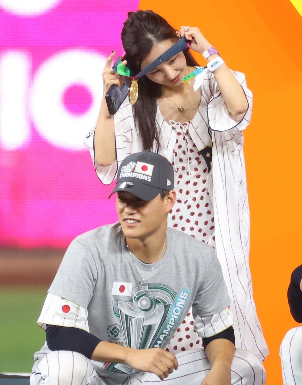 なお、表彰式後には日本とアメリカの両チームの家族もグラウンドに降りて記念撮影などに興じ、その中には高橋奎二選手(東京ヤクルトスワローズ)と2021年に結婚した元AKB48・板野友美ら“タレント妻”たちの姿も。